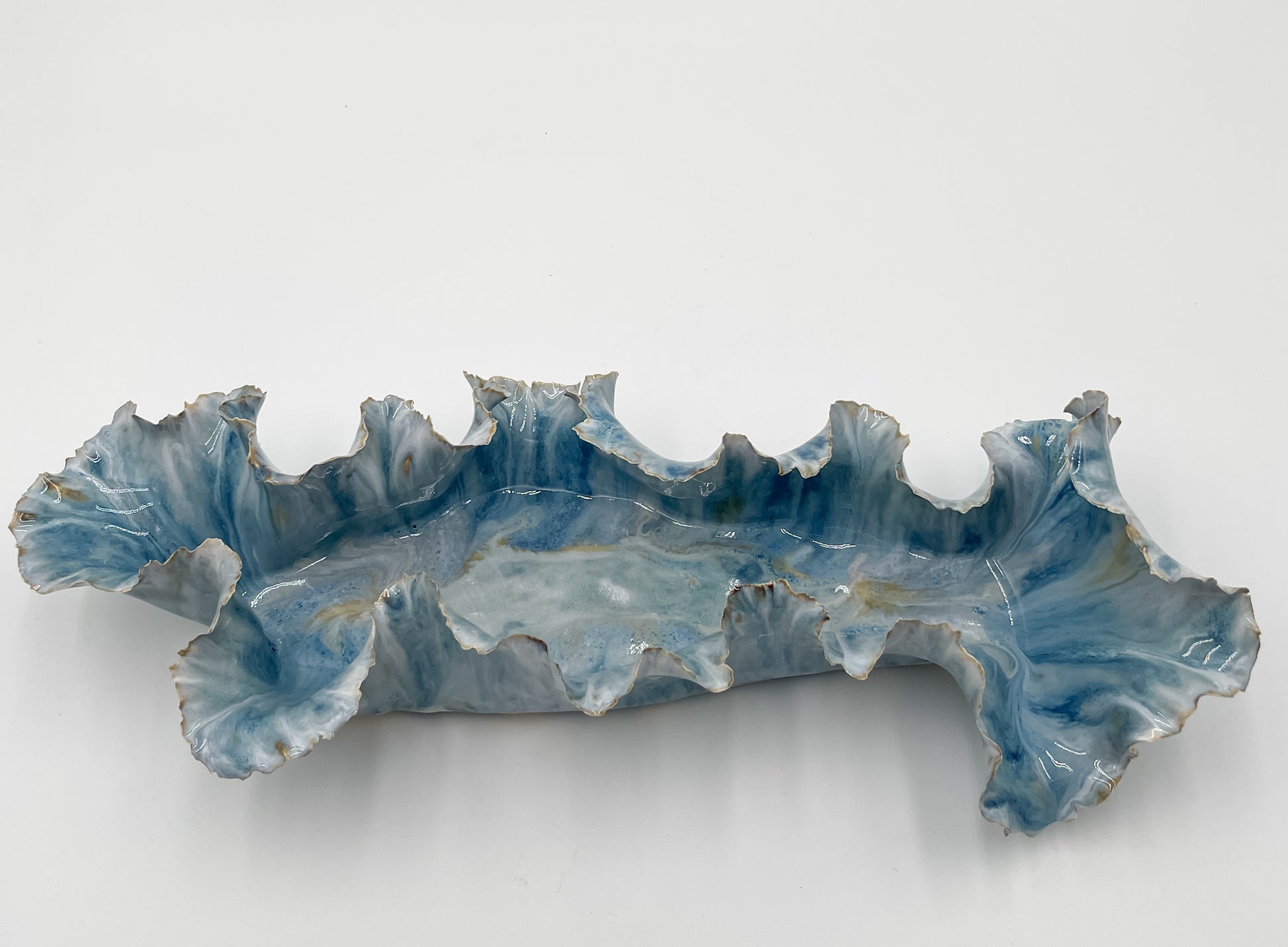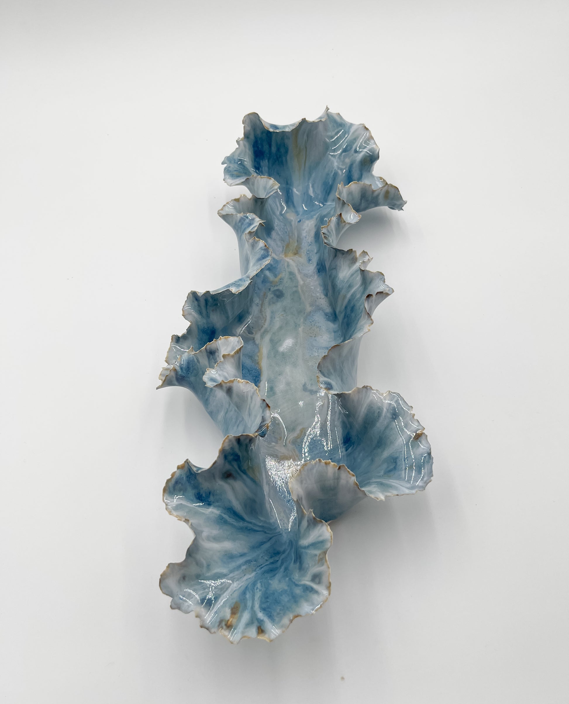 After experimenting with stoneware and porcelain clay to try and create either a flower sculpture or coral sculpture, Cori created a piece that looks like Fox Coral. An original unique piece perfect for your home decor.