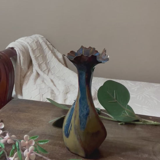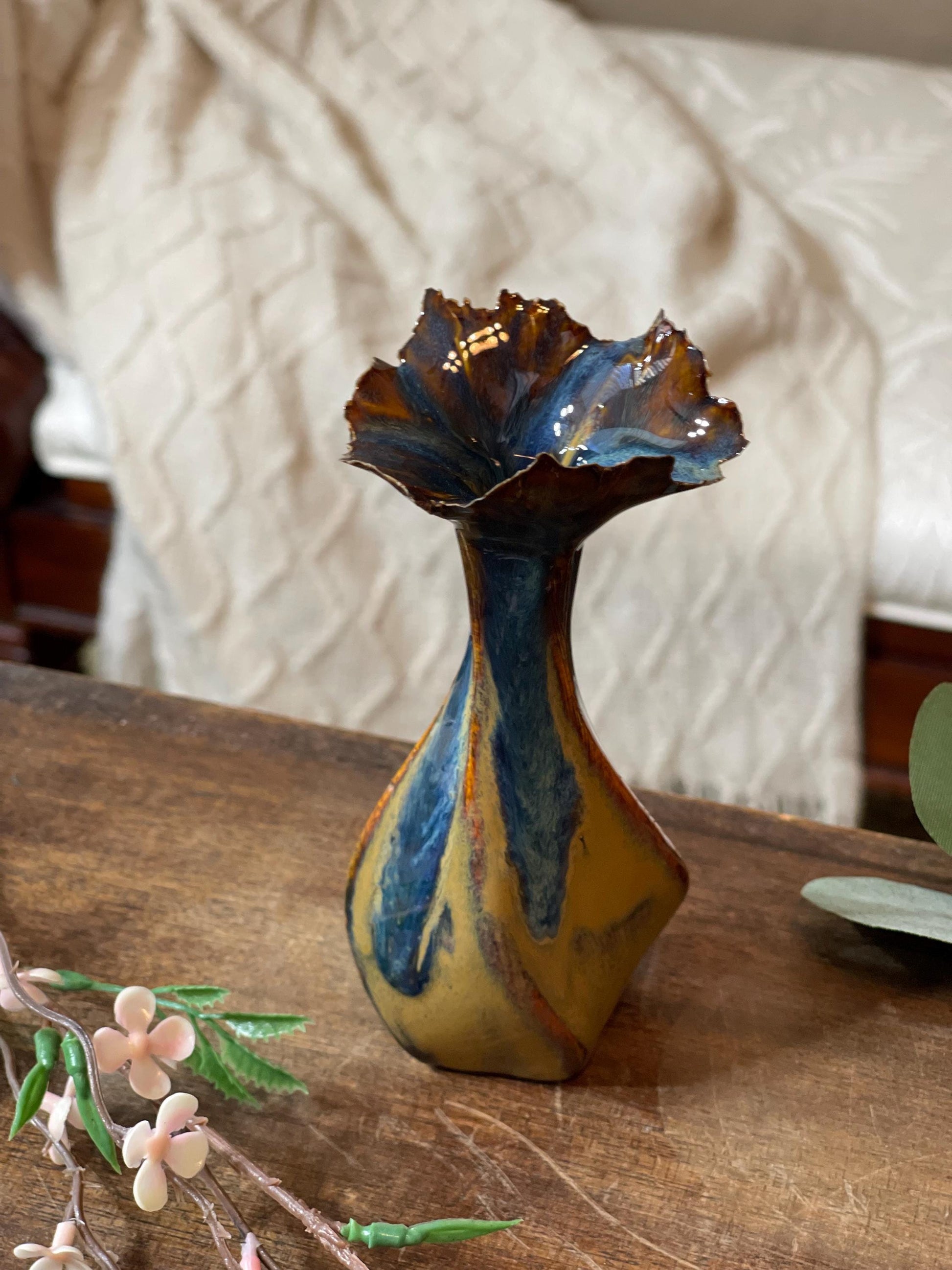 This mini vase features meticulously sculpted porcelain clay and hand-painted layers of glaze to create a one of kind design. A labor of love, each vase is expertly sculpted, creating a masterpiece that will elevate the look of your home décor and become an heirloom piece for generations to come.