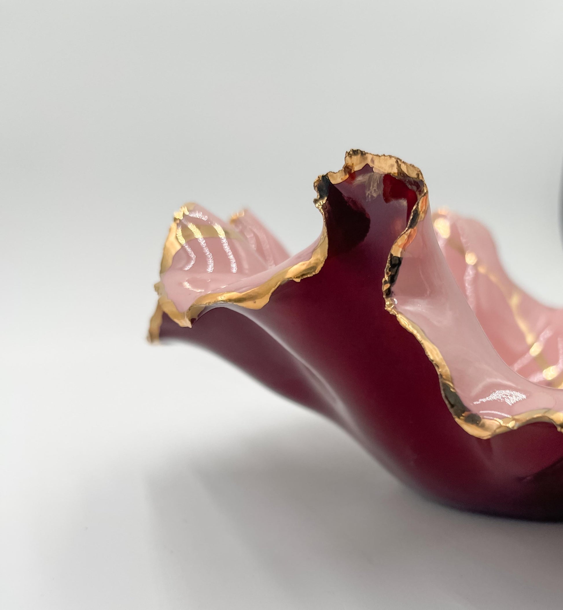 Have an idea for your own customized Kintsugi Style Blossom Bowl? Send us a message! Porcelain offers the ability to create the unique décor you’re looking for and the perfect gift to give a loved one. With options for different petals, colors, and glazes, Cori can craft the perfect ceramic heirloom for you.