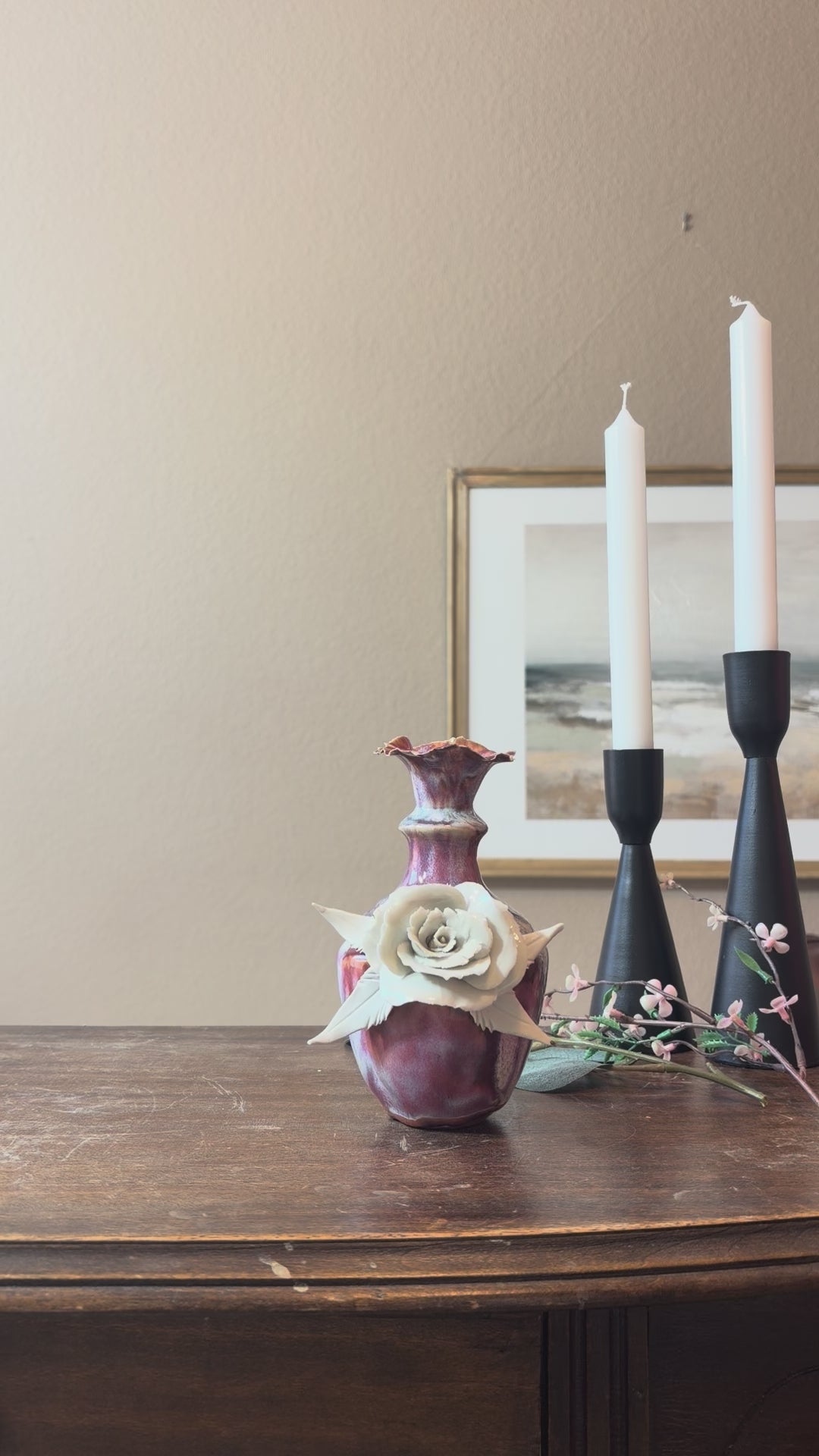 Each vessel is individually sculpted by Cori Aschkenas in her Oklahoma studio. Due to the organic nature of handmade ceramics, each flower and form will have its own unique rhythm and charm. No two are ever exactly the same.