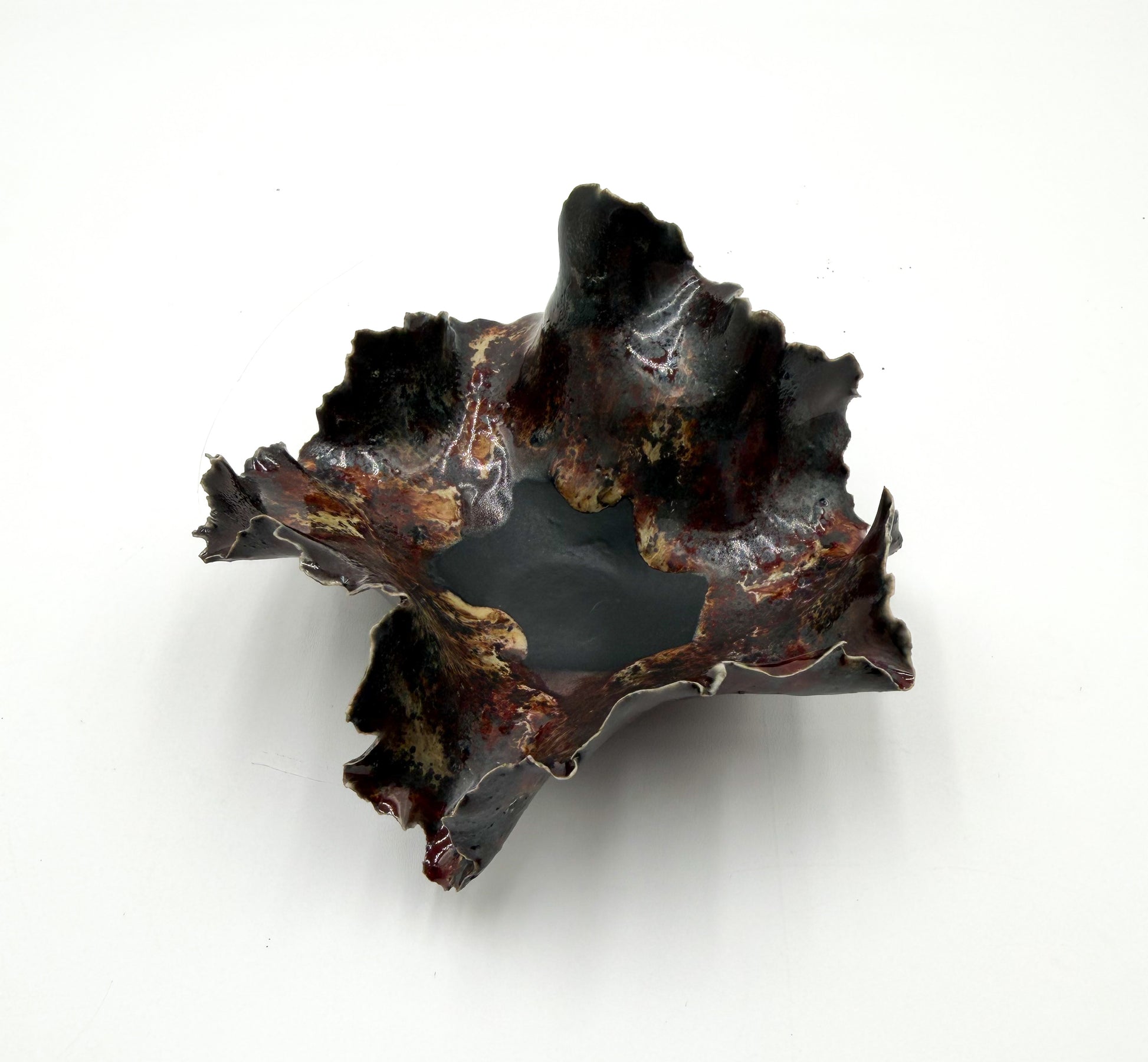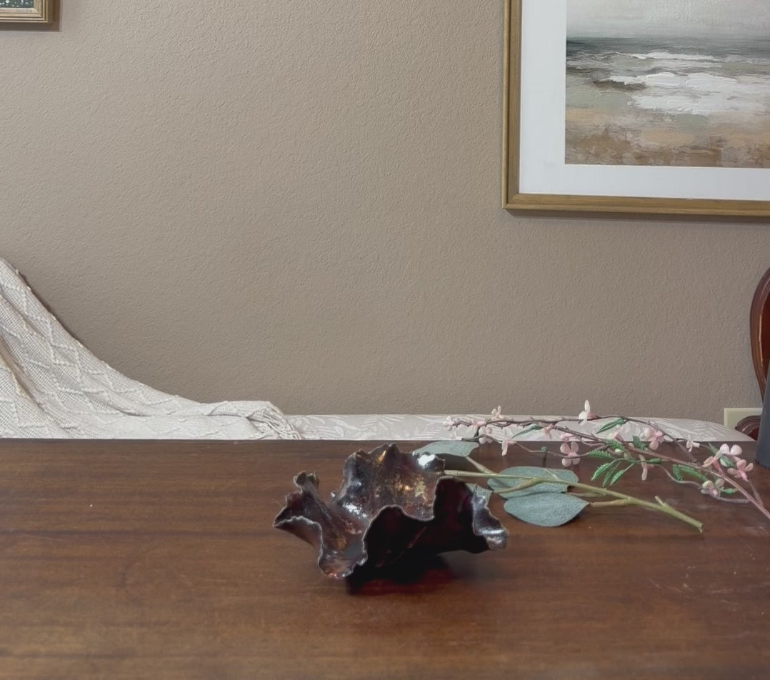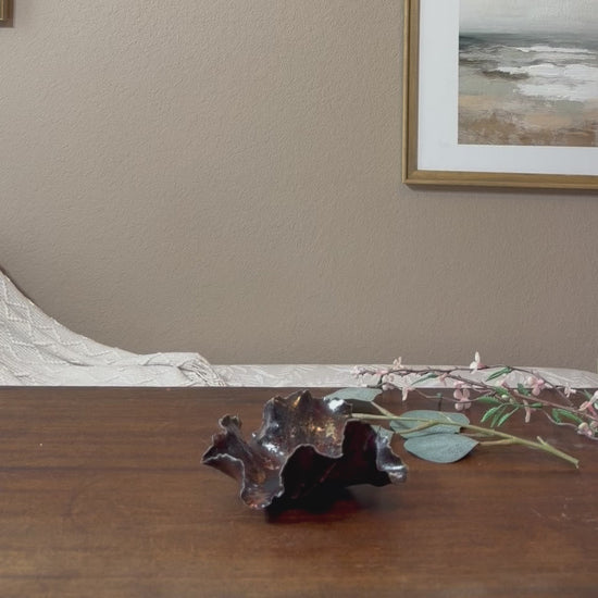 This Trinket Dish features meticulously sculpted stoneware clay and hand-painted layers of glaze to create a one of kind design. A labor of love, each dish is expertly sculpted, creating a masterpiece that will elevate the look of your home décor and become an heirloom piece for generations to come.